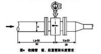 2.2.對工藝管的要求 流量計對安裝點的上、下游工藝管有一定的要求,否則影響測量精度。 a.上、下游工藝管的內(nèi)徑與傳感器的內(nèi)徑相同,并應(yīng)滿足:0.98DN≤D≤1.05DN(式中DN:傳感器內(nèi)徑,D:工藝管內(nèi)徑) b.工藝管與傳感器必須同心,同軸偏差應(yīng)不大于0.05DN 2.3.旁通管的要求 為了方便檢修流量計,最好為流量計安裝旁通管,另外,對重污染流體及流量計需清而流體不能停止的,必須安裝旁通管。