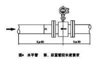 電磁流量計的測量原理不依賴流量的特性,如果管路內(nèi)有一定的湍流與漩渦產(chǎn)生在非測量區(qū)內(nèi)(如:彎頭、切向限流或上游有半開的截止閥)則與測量無關(guān)。如果在測量區(qū)內(nèi)有穩(wěn)態(tài)的渦流則會影響測量的穩(wěn)定性和測量的精度,這時則應(yīng)采取一些措施以穩(wěn)定流速分布: a. 增加前后直管段的長度 b. 采用一個流量穩(wěn)定器 c. 減少測量點的截面。 1.對外部環(huán)境的要求 1.1.流量計應(yīng)避免安裝在溫度變化很大或受到設(shè)備高溫輻射的場所,若必須安裝時,須有隔熱、通風(fēng)的措施。 1.2.流量計最好安裝在室內(nèi),若必須安裝于室外,應(yīng)避免雨水淋澆,積水受淹及太陽暴曬,須有防潮和防曬措施。 1.3.流量計應(yīng)避免安裝在含有腐蝕性氣體的環(huán)境中,必須安裝時,須有通風(fēng)措施。 1.4.為了安裝、維護(hù)、保養(yǎng)方便,在流量計周圍需有充裕的安裝空間。 1.5.流量計安裝場所應(yīng)避免有磁場及強振動源,如管道振動大,在流量計兩邊應(yīng)有固定管道的支座。 2. 管道式電磁流量計 2.1.對直段的要求 為了改善渦流與流場畸變的影響,流量計安裝的前、后直管段長度有一定要求,否則會影響測量精度(也可安裝整流器,盡量避免在靠近調(diào)節(jié)閥和半開閥門之后安裝)。