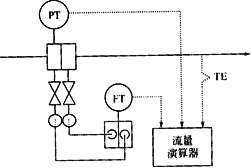 1 過(guò)熱蒸汽質(zhì)量流量測(cè)量 當(dāng)流體為過(guò)熱蒸汽時(shí),取決于流體壓力ρ1和流體壓力ρ1和流體溫度t1。圖3.1所示為測(cè)量系統(tǒng)。