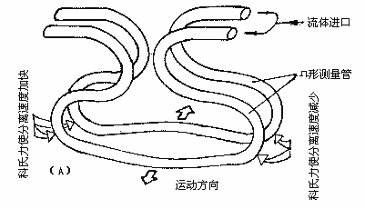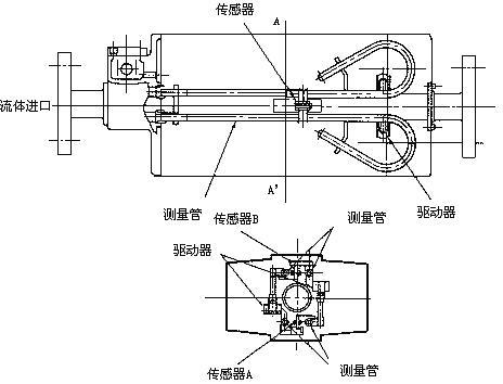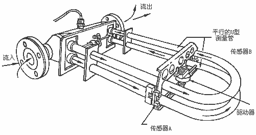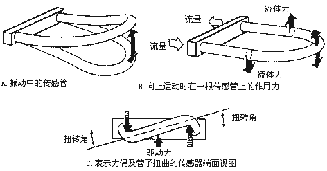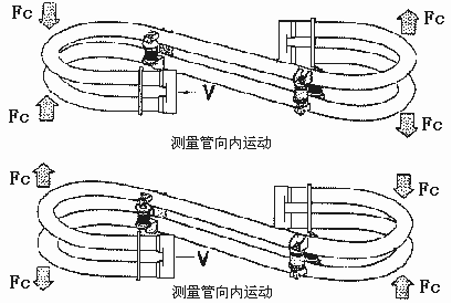 通過在端面兩回路之間合理的安裝傳感器,這些由科氏力引入的運動就可用來精確測定流體的質量流量。