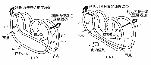 而回路中的流體在科氏力作用下示的回路L1'和L1''相互靠近的速度減慢,而另一端L2'和L2''兩回路相互靠近速度增加。